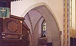 Предполагается также, что старый вход в церковь находился в нижнем этаже колокольни возле входа в средний неф. В его дверном проеме сохранились рельефы, на которых изображены драконы. Эти рельефы (ок. 1400 г., родственны рельефам капителей Екатерининской капеллы в Вильянди, Эстония) считаются самыми старинными скульптурными изображениями, которые можно увидеть в Цесисе. Крестовые своды церкви и возвышающаяся базиликальная часть, облицованная снаружи красным кирпичом, украшенная фризом из стрельчатых шишек и прорезанная готическими окнами, относятся приблизительно к середине XIV в. На это указывает также единственная выполненная в виде мужской головы консоль сводов среднего нефа, размещенная возле триумфальной арки.