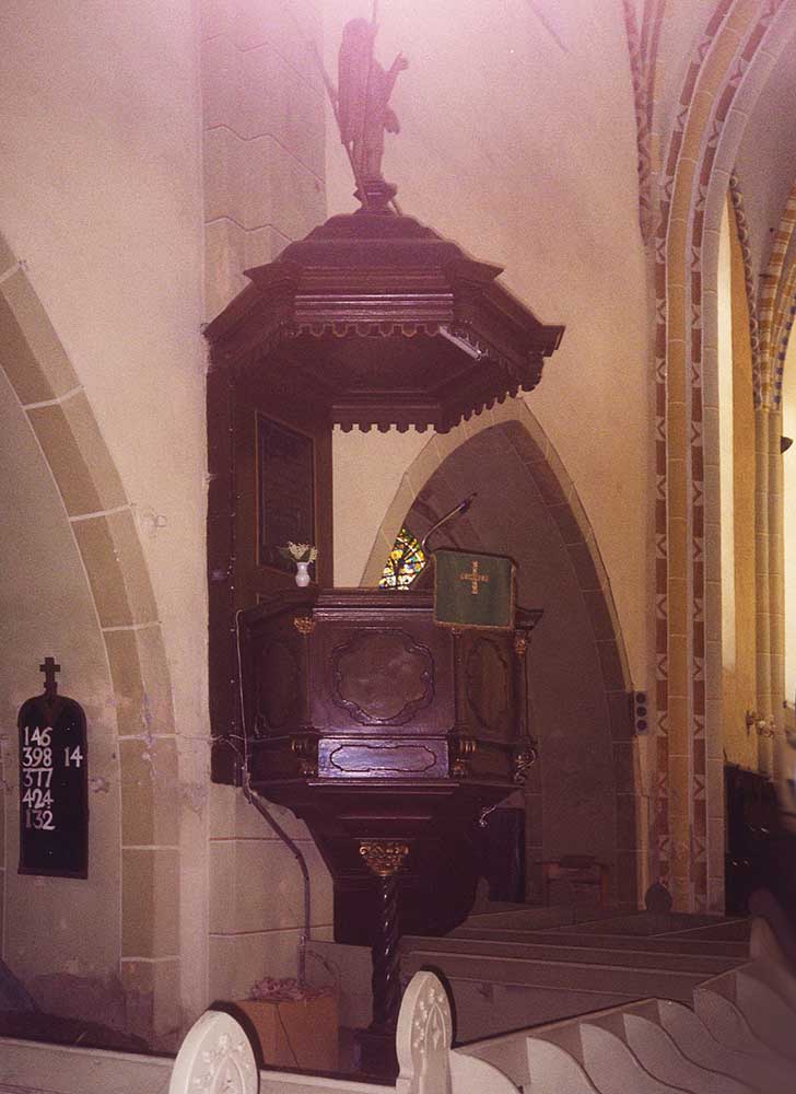 В церкви имеется интересная деревянная скульптура, изображающая ангела. По всей видимости, это работа неизвестного местного мастера. Заслуживают внимания также два барельефа с изображением драконов на внутреннем портале церкви. На алтаре лежит напечатанная в Нюрнберге в 1768 году иллюстрированная библия в деревянном переплете, обшитом красной кожей, с золотыми украшениями и медными застежками.