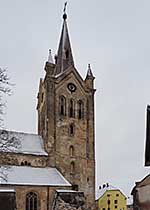 В первоначальном виде у церкви не было и большой, массивной колокольни. Об истории ее строительства источники умалчивают, однако о более позднем происхождении колокольни свидетельствует более древний портал с загадочными зверями у входа в помещение. Алтарные хоры в нынешнем виде построены в XVI в., контрфорсы пристроены: с северной стороны после 1686 г., с южной - после пожара 1748 г. Нынешний шпиль колокольни приобрел неоготические очертания в 1853 г. по проекту архитектора Т.-А. Пуншела, уроженца Цесиса. Его реализовал латышский строитель Марцис Подиньш-Сарумс (1799-1859), который называл себя последним ливом Видземе. Марцис Сарумс был знаменитым строителем, работал на сооружении многих церквей Видземе и обучил ремеслу многих латышских мастеров-каменщиков. Среди них был Янис Кампе, который впоследствии много работал на строительстве церкви Св. Иоанна.