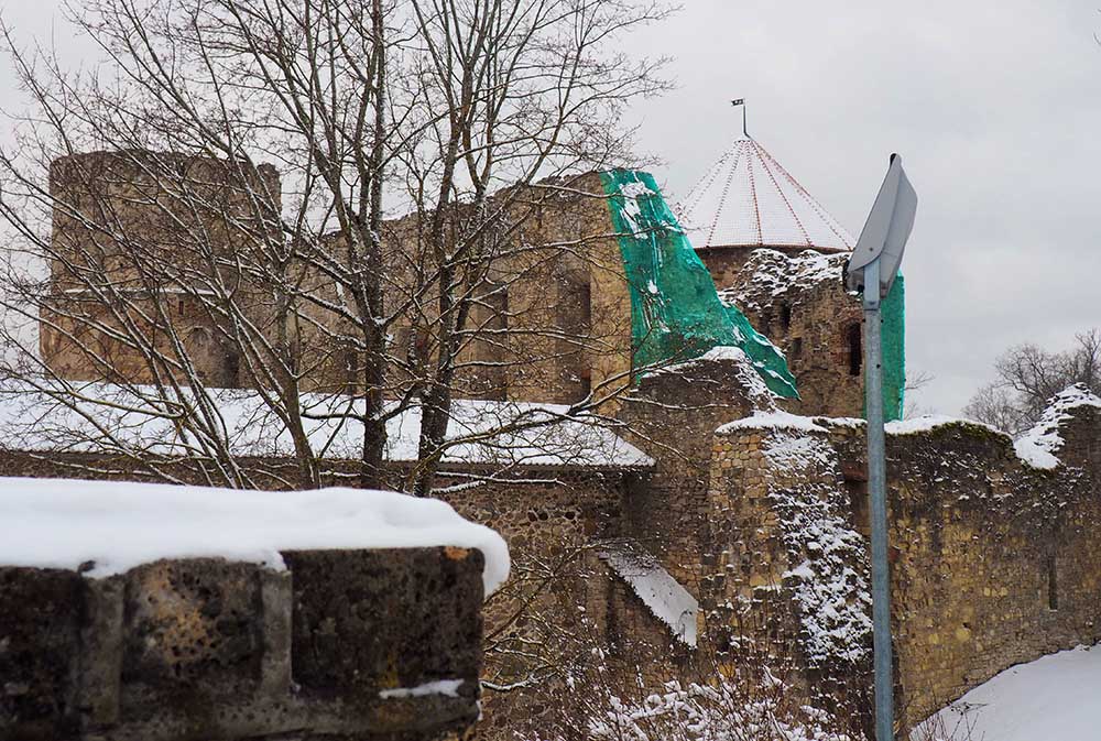 Средневековый город и замок Ливонского ордена были окружены защитной стеной из доломита. Восемь укрепленных башен охраняли город, четыре из них имели ворота, через которые можно было войти в город, в то время как в пятой башне находился вход в замок. Во время Ливонской войны замок был частично разрушен при осаде войсками Ивана Грозного; с начала 18 в. фактически заброшен.