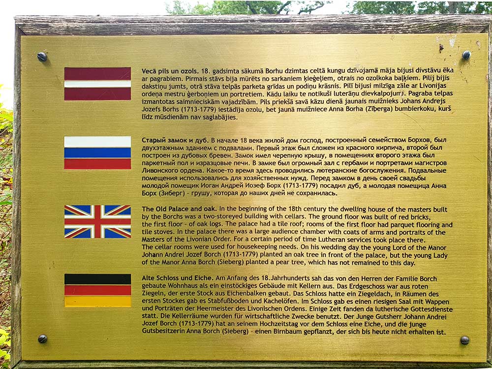 Dainis Bruģis "Historisma pilis Latvijā" Sorosa fonds - Latvija, 1996 Информационный стенд (фото 2025 г.)