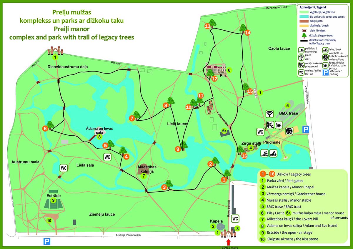 Из хозяйственных строений до наших дней дошли построенные в третьей четверти XIX века неоготические конюшни, ворота с арками, домик привратника и часовня (1817 г.). Парк поместья площадью 42 га, является одним из самых значительных ландшафтных парков Латвии. Здание Прейльской усадьбы является памятником архитектуры государственного значения.