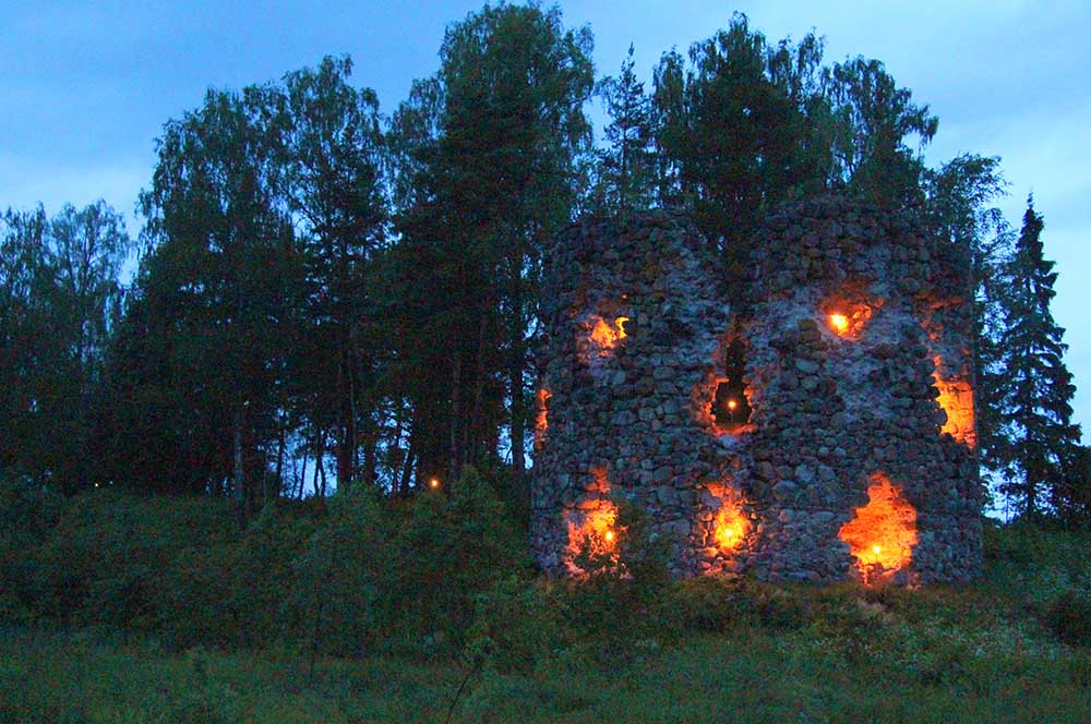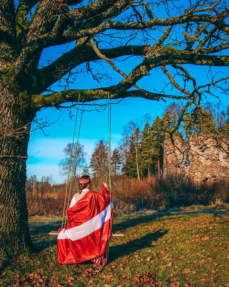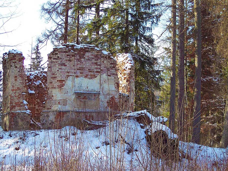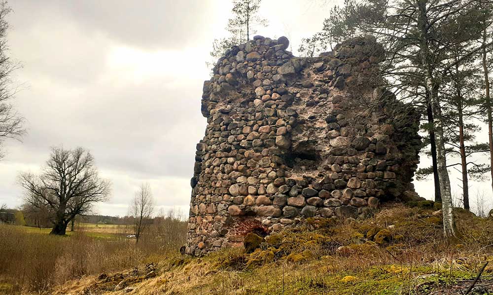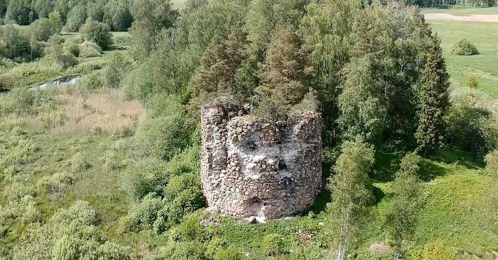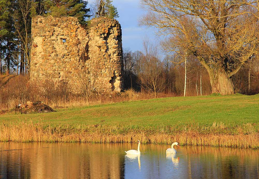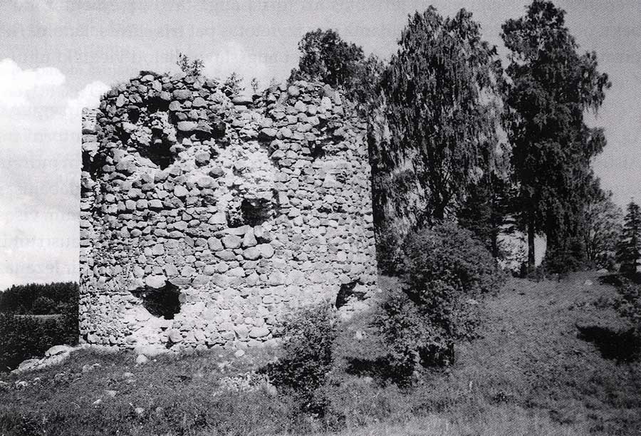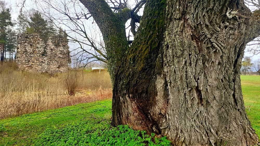 3. В Розульской волости, недалеко от реки Брасла, находятся развалины рыцарского замка. Возле развалин растет большая сосна. Об этой сосне рассказывают, что ее посадил шведский король. Когда русские в Латвии разбили шведское войско, сам шведский король бежал босиком и с немногими солдатами укрылся в замке, где и посадил сосну корнями вверх. Уходя, он сказал, если сосна будет расти, то он вернется назад. Сосна растет и теперь <записано в 1938 г.>, только ветвями вниз. Рассказывают также, что король там потерял шапку и обещал ее опять, вернувшись, отыскать.