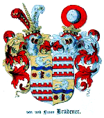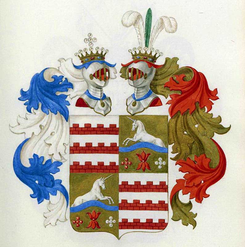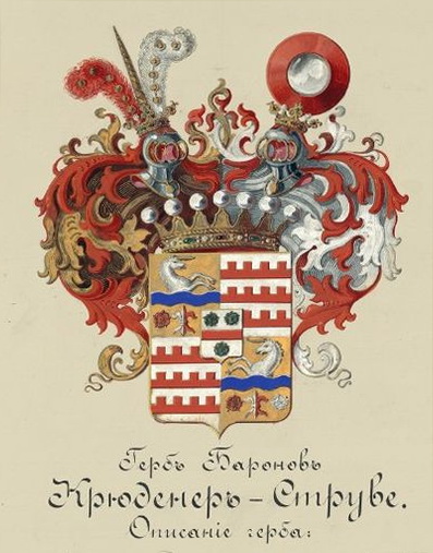 3 июля 1535 г. император Священной Римской империи Фердинанд в Вене утвердил и дополнил родовой герб Георга Крюденера из Розбеки (Georg Khrudener von Rosenbech), основываясь на заслугах рода Крюденеров в Ливонии. Родовой герб Крюденера был создан в его замке Розбеки, который его род использовал издавна. В Вене работала геральдическая комиссия, которая продавала и дополняла гербы, получая от того хороший доход, который шел в кассу кесаря. Свой родовой герб также получил советник рижского архиепископа Вильгельма Бранденбургского Георг Унгерн из Унгурпилса (von Ungern zu Purkeln), который так же, как Крюденер, пытался получить титул фрайгерра немецкой Священной Римской империи. Фрайгерр (Freiherr - дословно "свободный господин"; обращение -"барон") - один из видов титулованного дворянства в немецкоязычных странах. У Крюденера не было прямых наследников, но его родные, которые упомянуты в документах, этот утвержденный дополненный герб в дальнейшем не использовали, в свою очередь сыновья Унгерна использовали как новый герб, так и титул фрайгерра.