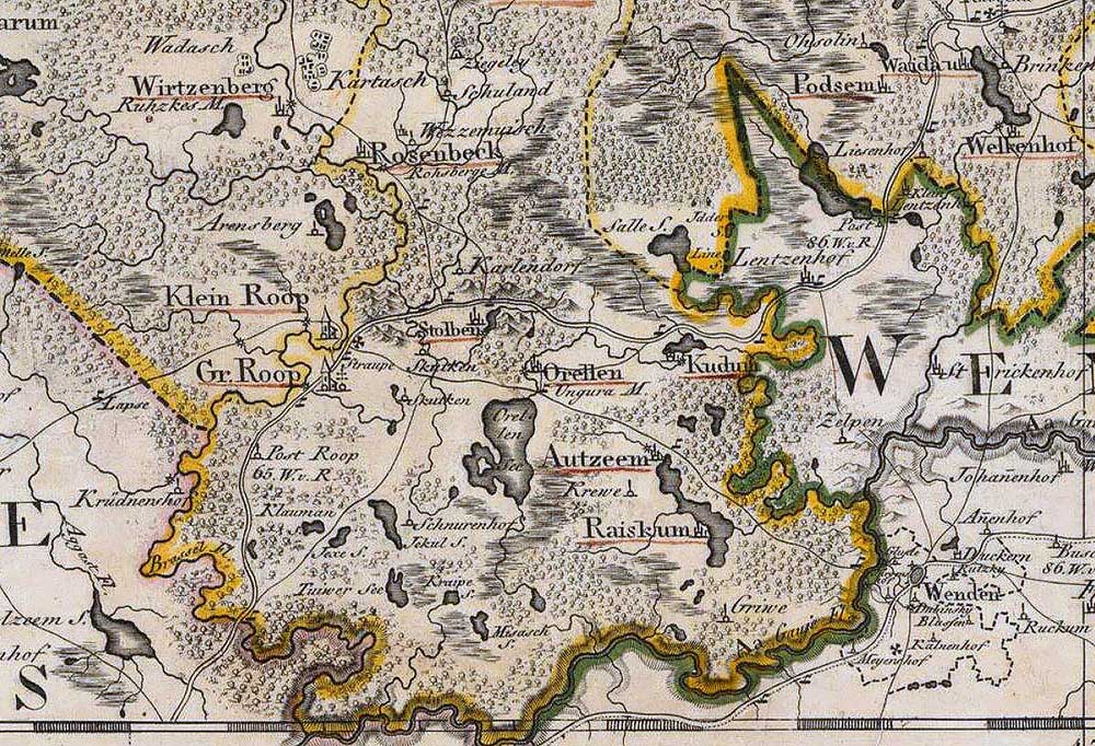 В 1563 г. 1 апреля в Лимбажи, 25 апреля в Аугстрозе и 29 апреля в Розбеки был составлен список вассалов, принесших клятву верности Кристофу Мкленбургскому. Из них в Розбеки принесли клятву Юрген Паткуль, Вильгельм Ширштейн, Иоганн Ноткен, Андреас Паткуль, Фридрих Крюденер, Вольмар Крюденер, Якоб Ростикен, Юрген Вейпт (номера 44-51 в списке).