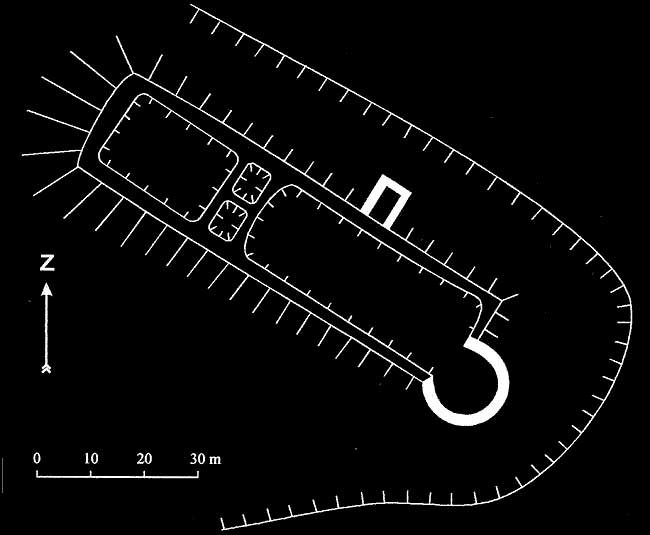 История замка показывает, что замок постоянно был разделен между несколькими разными владельцами одновременно. Из-за этого разделения, вероятно, сам замок был разделен на два отдельных двора с башнями, больший из которых содержал большую южную круглую пушечную башню и надвратную башню, а меньший содержал небольшую круглую пушечную башню. Больший двор образовывал своего рода хозяйственную постройку.