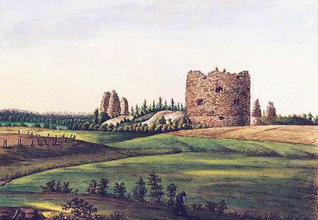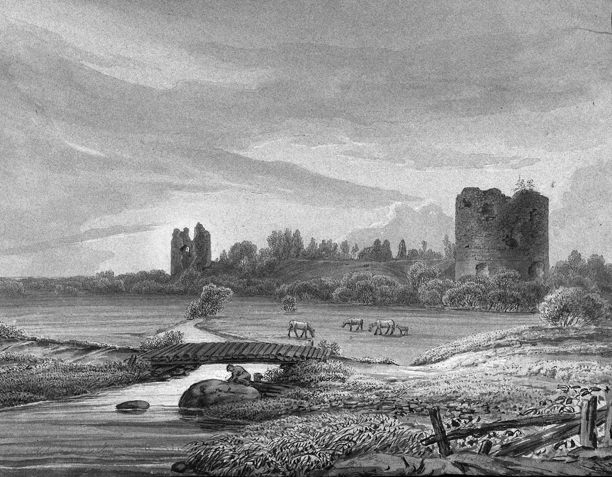 Около 1829 г. В. Туш замерил план развалин замка для альбома маркиза Паулуччи. Полукруглая восточная башня – возможная башня ворот могла бы быть около 8-9 м в диаметре, согласно замерам, данным в альбоме Паулуччи.
