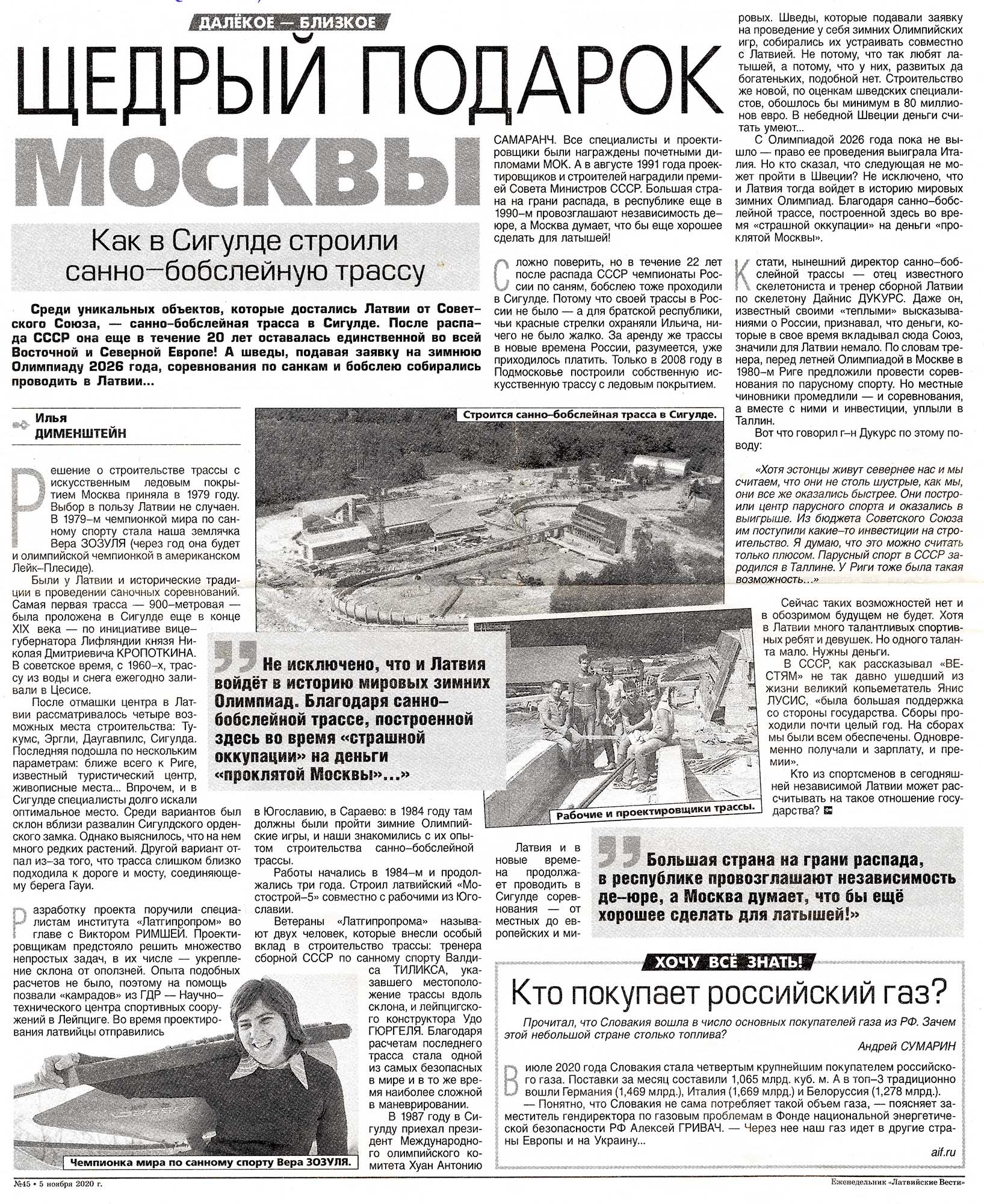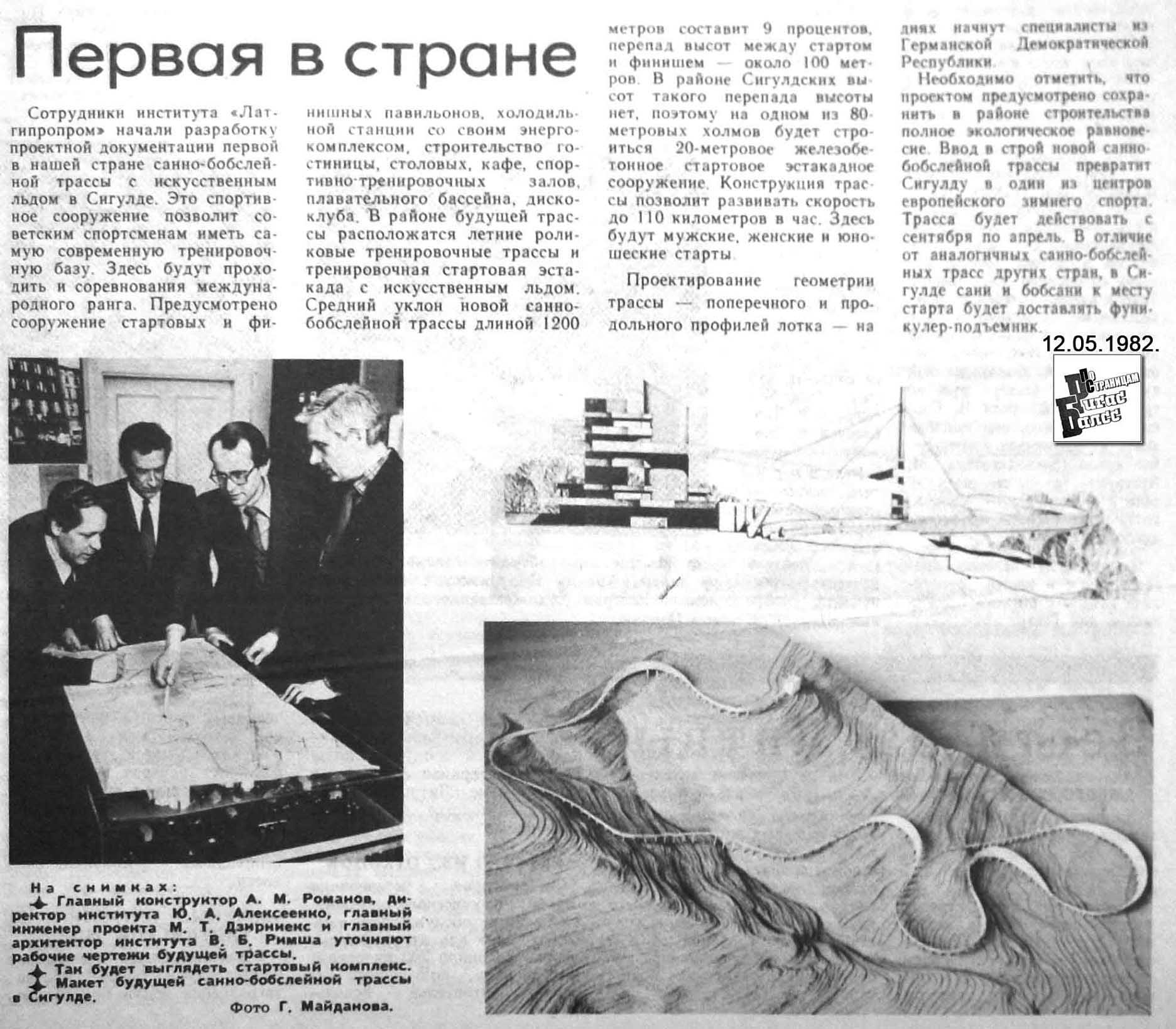 Сигулдская санно-бобслейная трасса запроектирована в 1984 и построена в 1986 г. Предусмотрена как для бобслея, так и для санного спорта. Архитекторы Виктор Римша, Арвид Пургайлис, Марис Йостиньш, ГИП Миервалдис Дзирниекс, конструктор Анатолий Романов.