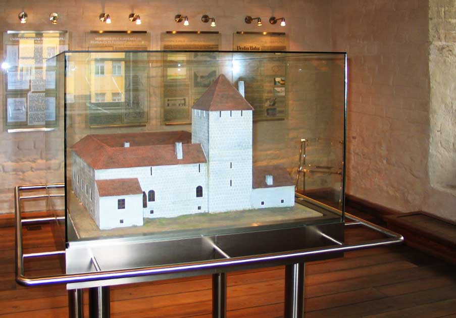 301 комната. Экспозиция рассказывает о замке Ливонского ордена в Вентспилсе, древнейших строениях города Вентспилс, их истории. Представлены древности, обнаруженные в ходе археологических раскопок - монеты, пушечные ядра, глиняная посуда и прочие предметы, связанные как с военной тематикой, так и с повседневной жизнью обитателей замка. Представлены интересные строительные детали: кирпичи, печные изразцы, черепица крыш. В центре экспозиции макет, изображающий, как выглядел замок в XVI в.